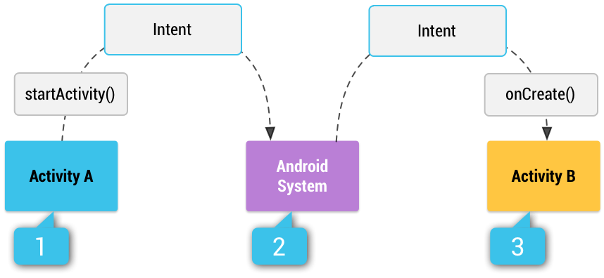 Intent는 다른 앱 구성요소에서 작업을 요청하는 데 사용할 수 있는 메시지 객체입니다. 인텐트는 여러 가지 방법으로 구성요소 간의 통신을 촉진하지만 다음과 같은 세 가지 기본적인 사용 사례가 있습니다.