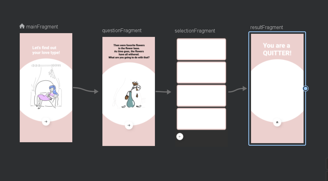 배운점: selection에서 question으로 뒤로가기를 할 때 add action으로 구현을 했는데, 그럴필요없이 stack에서 현재 view를 pop하면 된다.