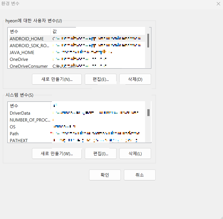 환경변수를 클릭한 뒤 사용자 변수에서 새로만들기를 클릭한다.