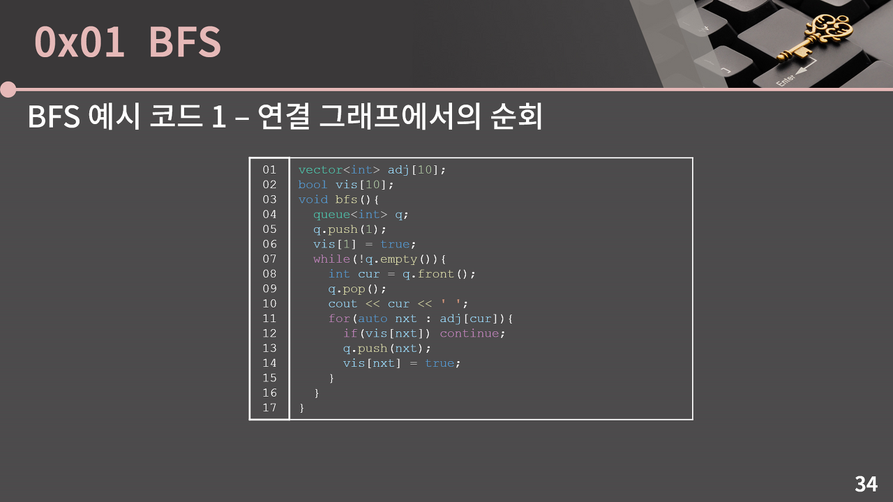 만약 위 예시처럼 연결그래프가 아닐 경우에는 BFS 그림 문제처럼, 모든 정점을 돌면서 아직 visit 하지 않은 정점을 시작으로 BFS를 돌려서 문제를 풀 수 있다.