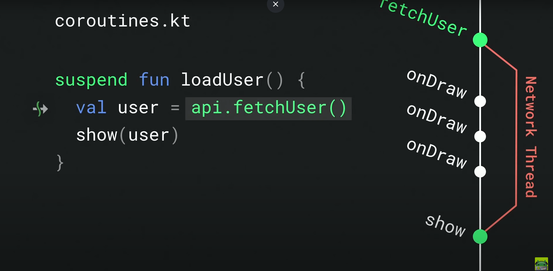 정말 우리는 DreamCode처럼 코드를 쓸 수 없을까? 코루틴의 suspend 키워드가 있으면 가능하다! 바로 이렇게 말이다.
