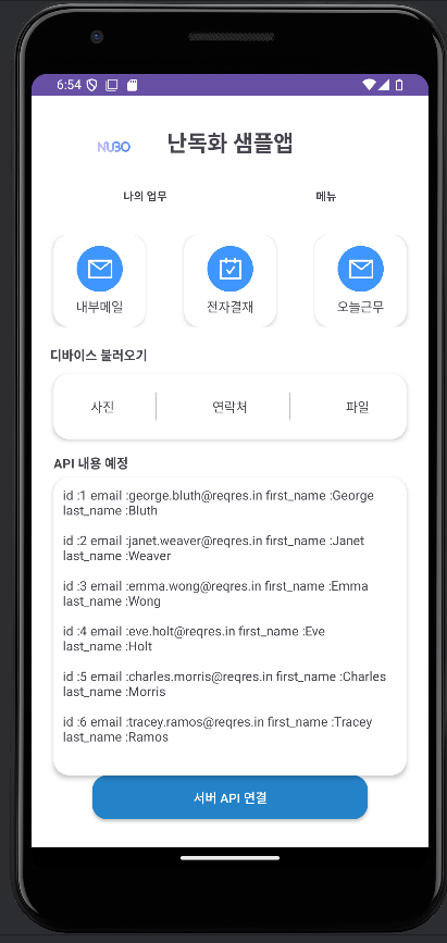 - 서버 API 연결 버튼을 클릭할 시 API를 바탕으로 받아온 데이터가 뷰에 띄워진다.