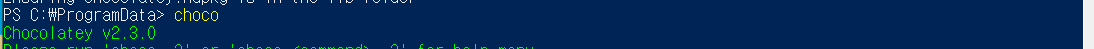 위 과정들을 겪은 뒤 다시 내용을 붙여넣어 실행하면 성공적으로 chocolatey가 설치된다.