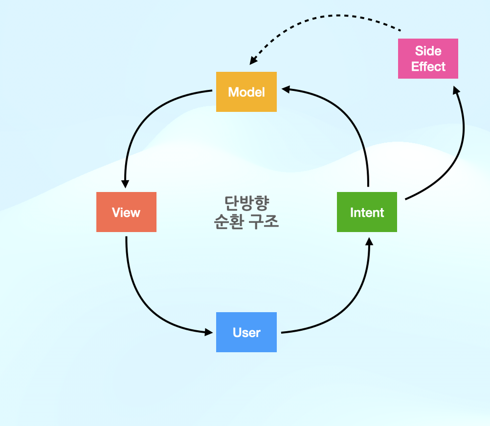 - View → ViewModel → View 순환 구조로 예측 불가능한 UI 상태 발생