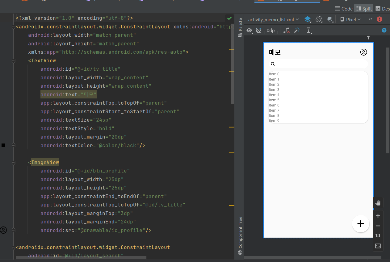 - xml 파일에서 RecyclerView 의 id는 rv_memo이다.