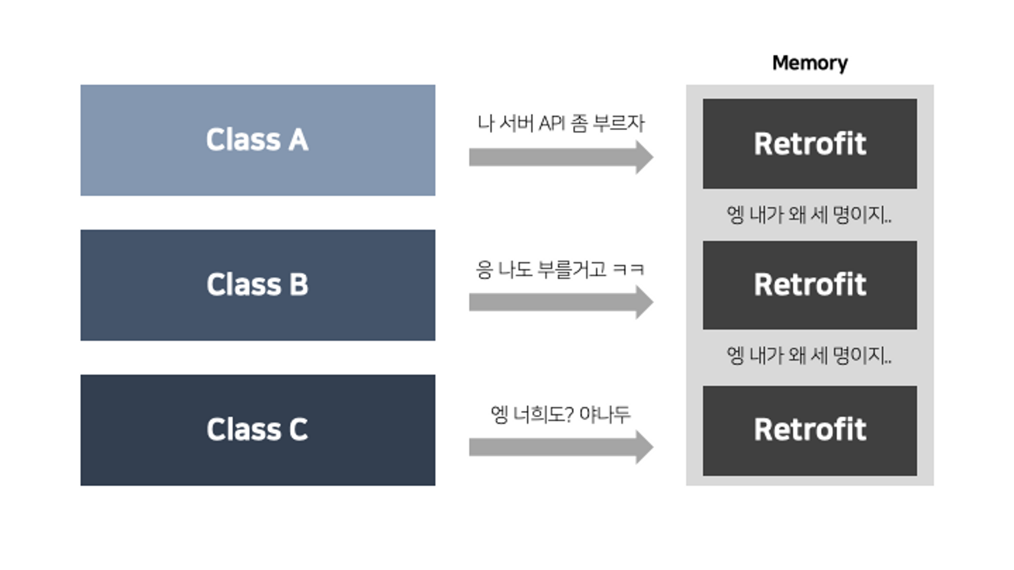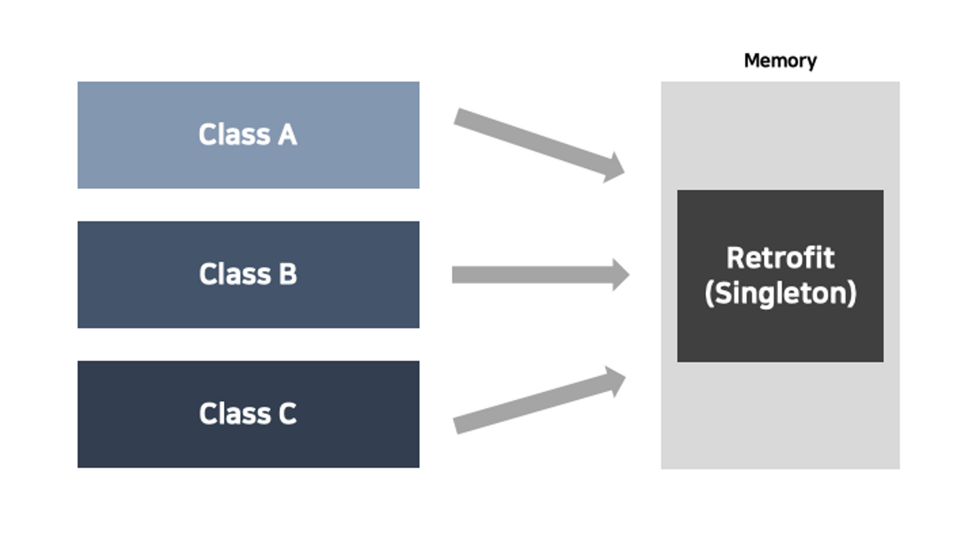 UMC 안드로이드 세미나에서 retrofit2 를 사용하는 방법을 배웠다. 당시 세미나에서 retrofit를 사용할 Activity에다가 build를 하셨다. 그렇다면 retrofit을 통해 서버와 데이터를 주고받을 activity전부에 저렇게 build를 다 해야하는건가 의문이 생겼고, 관련 질문을 하니 싱글톤패턴에 대해서 알려주셨다! 이를 기억하기위해 블로그에 작성해보고자 한다.