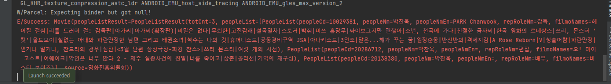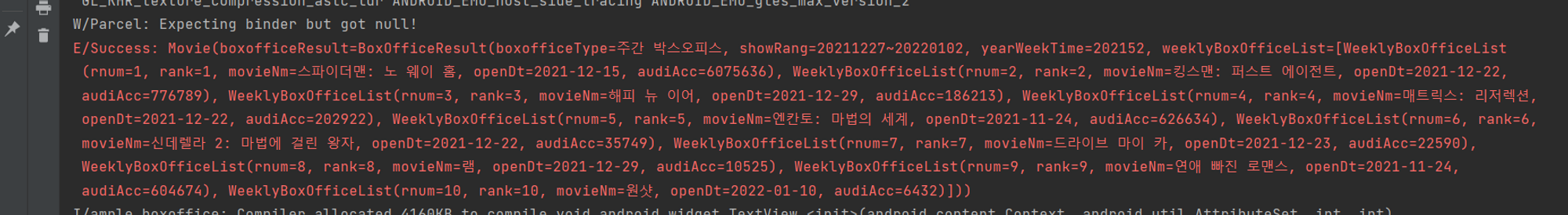 실제로 받은 데이터들의 모습을 Log로 찍어봤다. (Log.e인 이유는 눈에 잘 보이기 위함.)